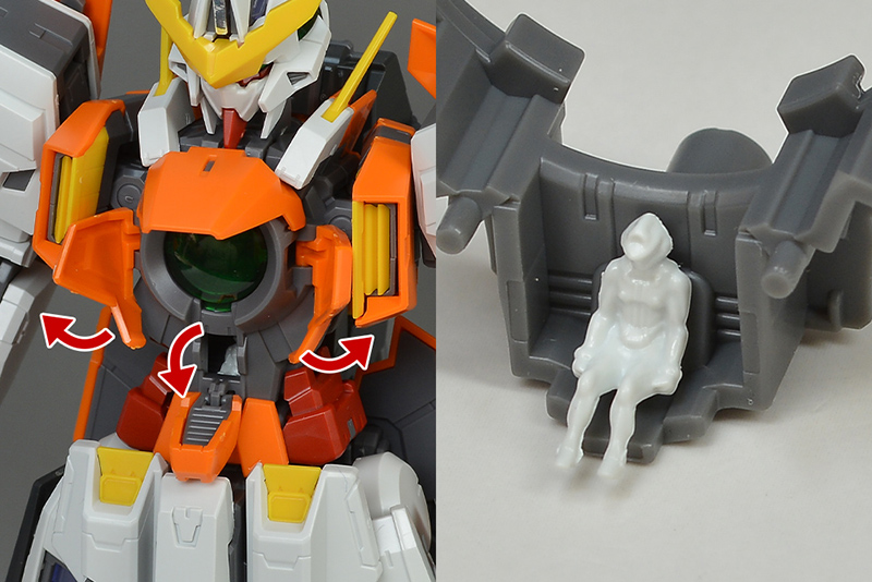 콕피트 해치나 좌우 장갑은 전개 가능. 에어 인테이크 부분의 장갑도 좌우 등으로 스윙할 수 있도록 되어 있습니다. 각부가 가동되므로 움직임이 유연. 콕 피트는 간이적인 구조로, 내부에는 알렐루야 합티즘의 파일럿 슈트 차림 피규어가 내장.