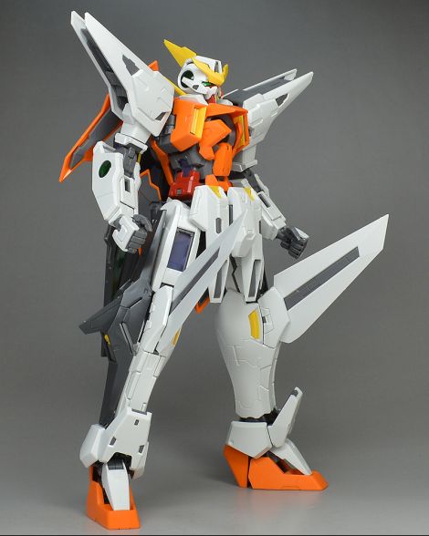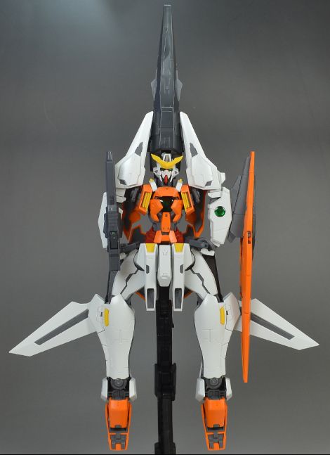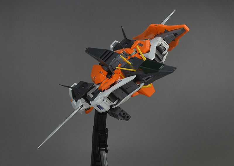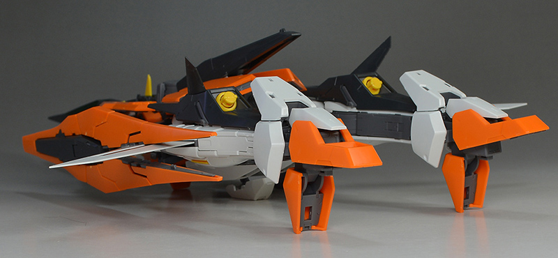 앞팔에 GN 빔 서브 머신건과 GN 실드를 장착하면 비행 형태로 변형 완료됩니다.(다리의 GN 버니어를 전개를 잊어버렸네요;)