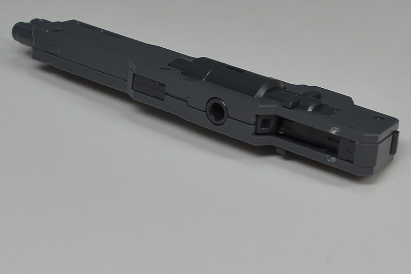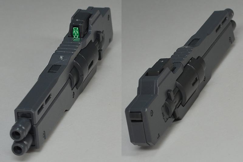 GN 빔 서브 머신건. 이 쪽도 다수의 파츠 구성으로 완성도 높은 구조로 되어 있습니다. 상단은 파팅 라인이고 좌우로 끼워넣은 본체 부분은 하단이 단락 몰드화되어 있습니다.